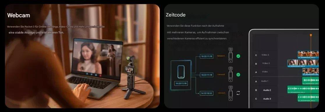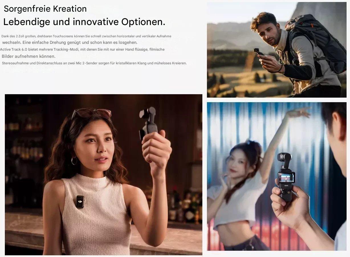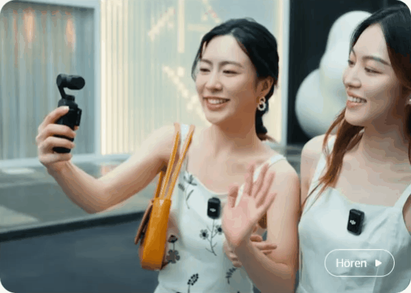 Pocket 3 kann direkt mit zwei Mic 2/Mic Mini-Sendern für Audioaufnahmen zu zweit verbunden werden. Das vereinfacht Ihre Ausrüstung und Ihren Workflow und optimiert Ihren kreativen Prozess. Das Anschluss-Ökosystem von OsmoAudio liefert überragende Audioqualität und ermöglicht kristallklare Aufnahmen für Vlogging, Interviews, Live-Streaming und mehr.