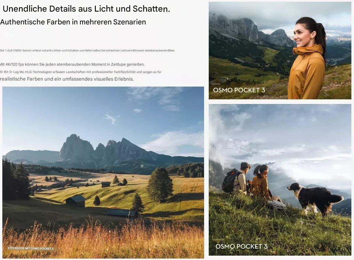 Der leistungsstarke 1-Zoll-CMOS-Sensor der Pocket 3 erfasst scharfe Details sowohl in hellen als auch in dunklen Bereichen. Seine überlegene optische Leistung verbessert die Bildqualität deutlich und gewährleistet zuverlässige Leistung auch bei schlechten Lichtverhältnissen.