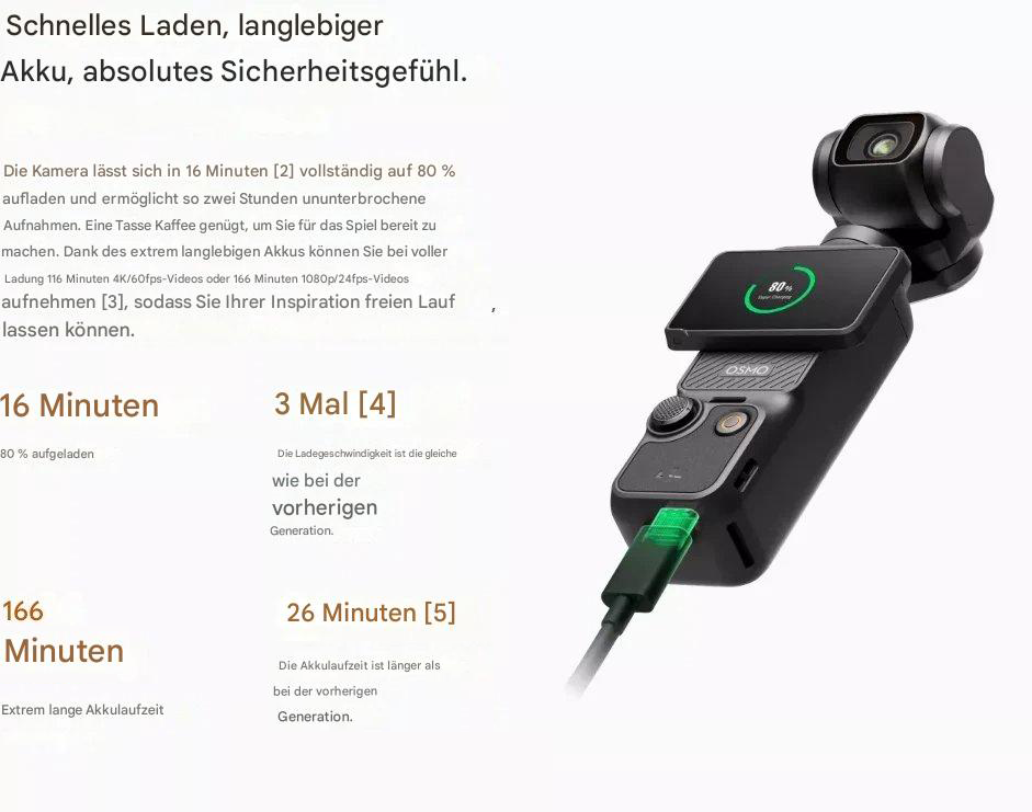Pocket 3 verfügt über ein integriertes Dreifach-Mikrofonsystem, das Windgeräusche effektiv reduziert und omnidirektionalen Stereoklang einfängt. Selbst in lauten Umgebungen wie Konzerten erkennt es Schallquellen präzise und sorgt so für ein intensiveres Klangerlebnis. Es unterstützt außerdem das USB-Audioprotokoll, sodass Sie schnell externe Mikrofone und Monitoring-Kopfhörer anschließen können.