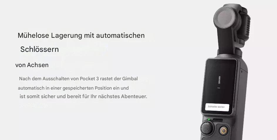 Ausgestattet mit einem 2-Zoll-OLED-Farb-Touchscreen bietet Pocket 3 klare Bilder und eine einfache, sofortige Steuerung. Drehen Sie, um die Aufnahme zu starten, oder tippen Sie einfach, um auf Parametereinstellungen und andere Funktionen zuzugreifen.
