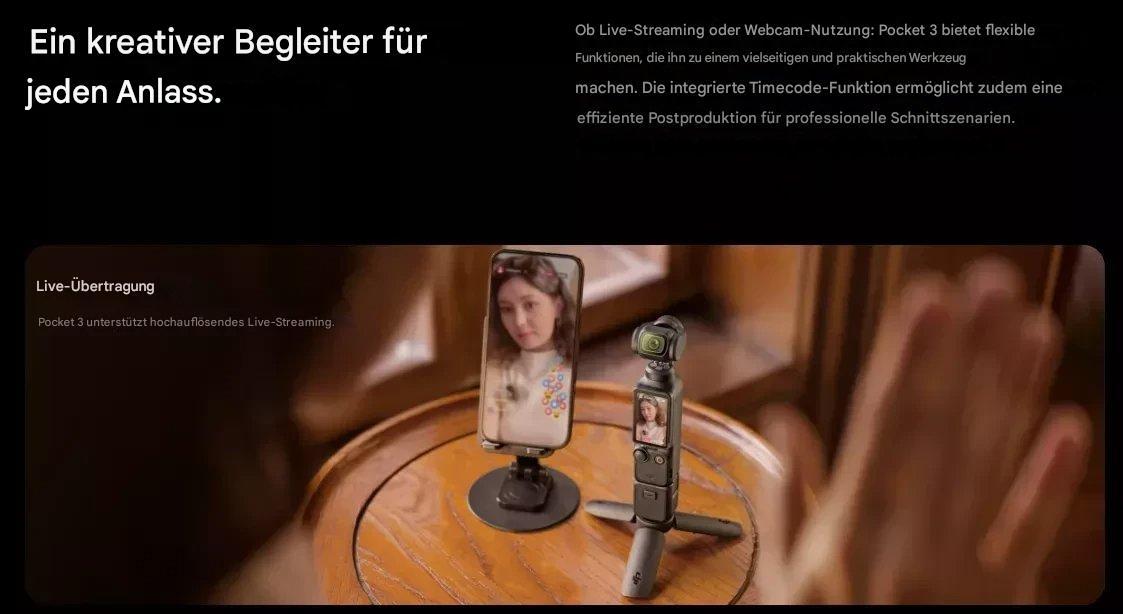 Der schnelle Vollpixel-Autofokus der Pocket 3 hält selbst sich schnell bewegende Motive scharf. Der neue Produktpräsentationsmodus priorisiert den Vordergrund und fokussiert das Motiv schnell und gleichmäßig – ideal für Live-Streaming und Produktpräsentationen.